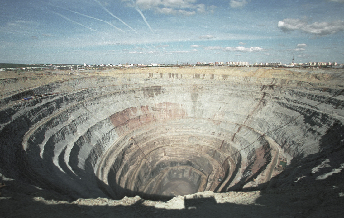 En Yakutia, la región del frío extremo y del permafrost en el Lejano Oriente de Rusia, se encuentra uno de los agujeros más grandes del planeta: el yacimiento de diamantes Mir, que proporcionaba al país la mayor parte de estas piedras preciosas.