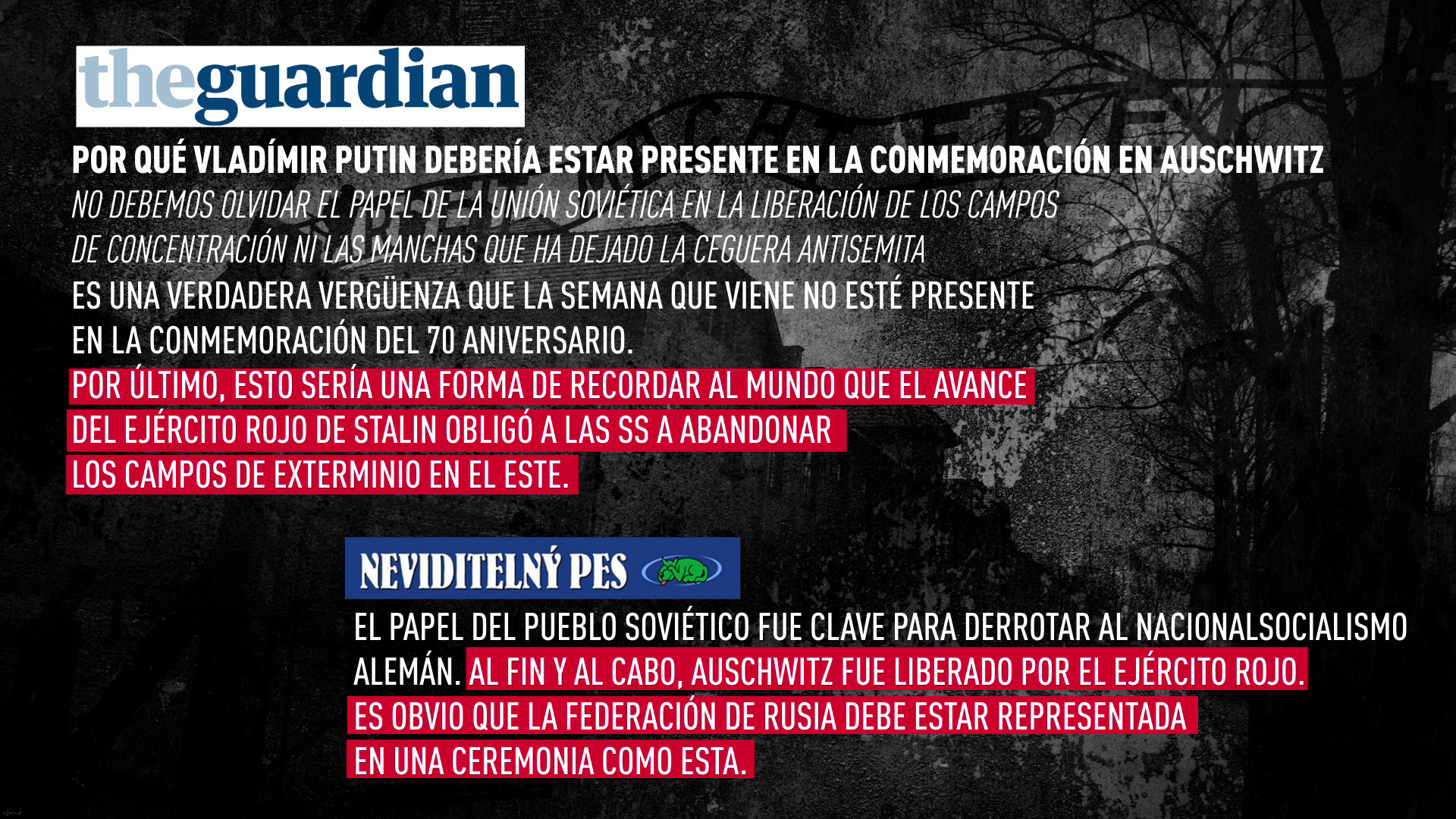 El bloguero José Miguel Álvarez ha comentado que "la posición que ha adoptado el Gobierno polaco respecto a esta cuestión ha sido la de denegar la historia", y que "en este caso se ha profanado la memoria de un millón de personas que murieron en este campo […] y de treinta millones de ciudadanos soviéticos que murieron en la Segunda Guerra Mundial". Asimismo, ha añadido que el Gobierno polaco ha adoptado esta postura porque persigue sus propios intereses ante las elecciones en 2015.