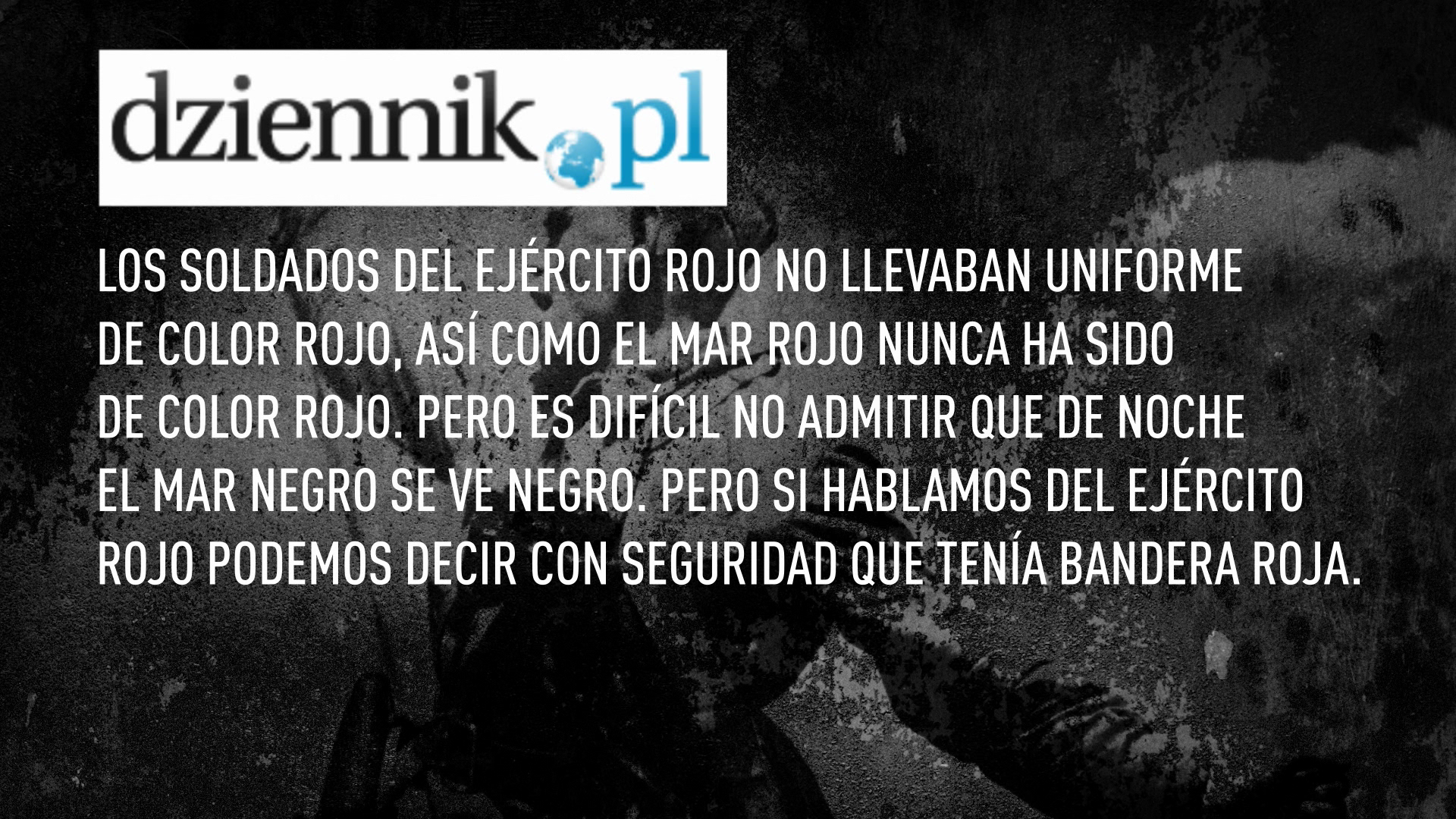 El portal Dziennik ha respondido: "Los soldados del Ejército Rojo no llevaban uniforme de color rojo, así como el mar Rojo nunca ha sido de color rojo. Pero es difícil no admitir que de noche el mar Negro se ve negro. Pero si hablamos del Ejército Rojo, podemos decir con seguridad que tenía bandera roja".