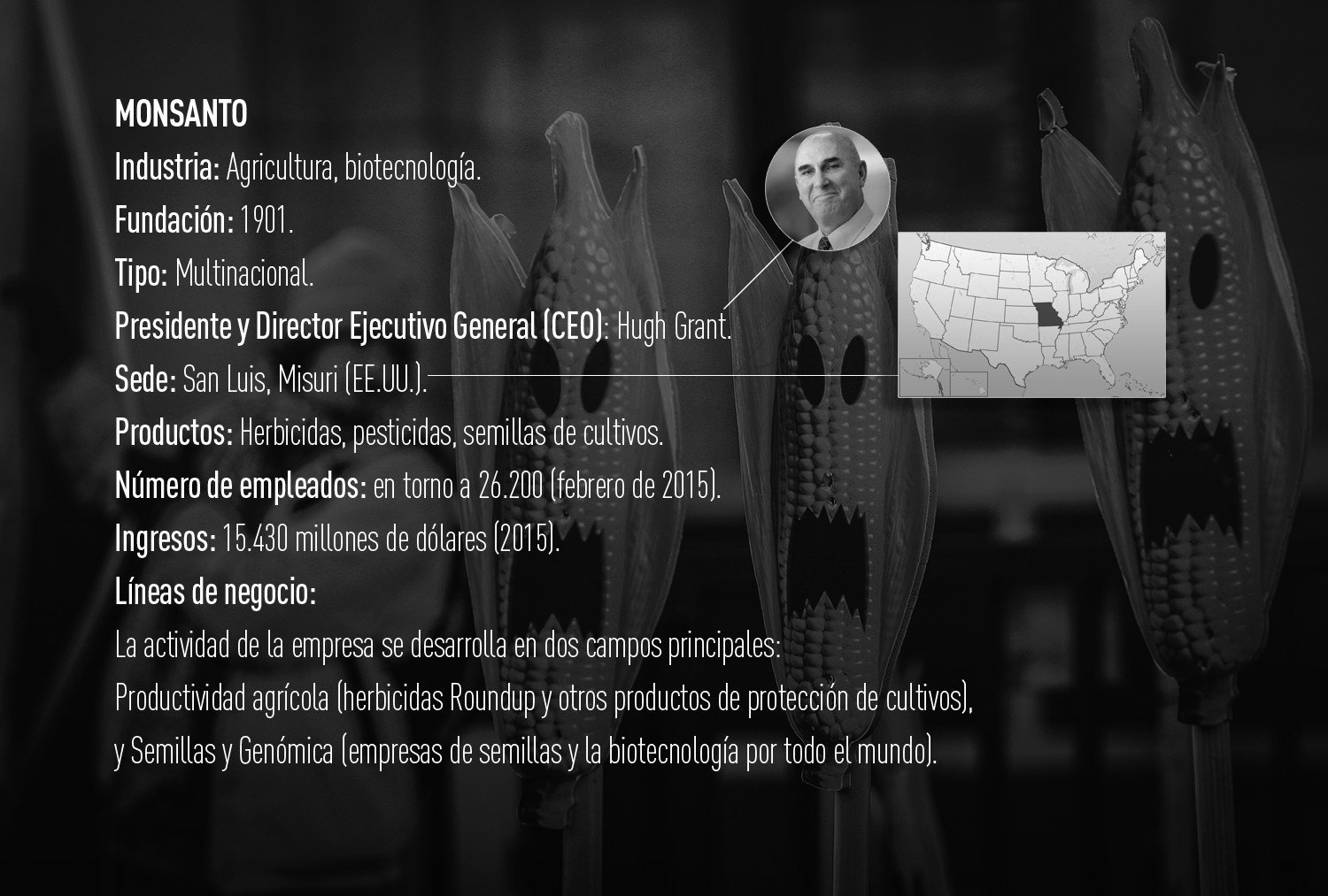Actualmente, Monsanto es el principal productor del herbicida glifosato Roundup y la hormona bovina de crecimiento, que preocupan por sus efectos en animales, en personas y en el medio ambiente.