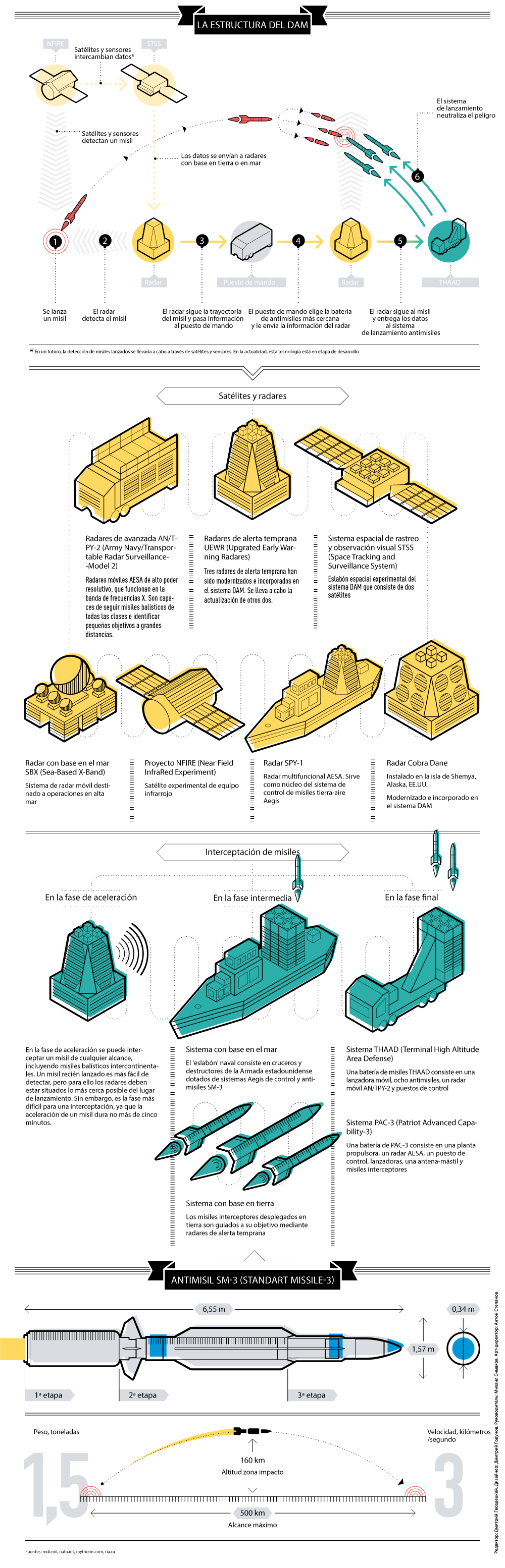 El escudo antimisiles es un sistema de defensa diseñado para interceptar proyectiles enemigos antes de que alcancen su objetivo. Los elementos de la defensa antimisiles estadounidense están instalados en 19 países.