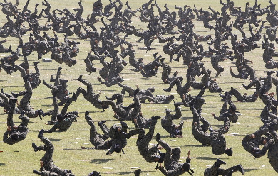 Endurecer el cuerpo con numerosos golpes hasta que no se sienta el dolor, romper todo tipo de objetos de concreto con su propio cuerpo y dominar a la perfección las artes marciales forma parte de la preparación de las tropas de élite norcoreanas.