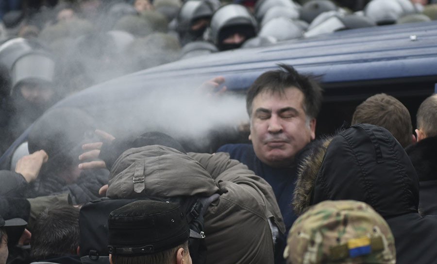 El enfrentamiento entre los manifestantes y las fuerzas de seguridad ucranianas se prolongó varias horas y causó varios heridos. Finalmente, los seguidores de Mijaíl Saakashvili rompieron la puerta trasera de la furgoneta y lo sacaron.