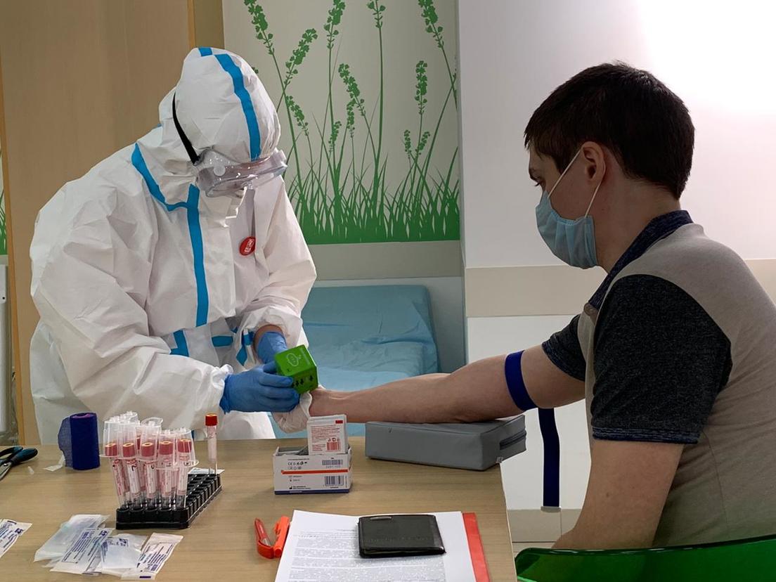 En la sede de RT en Moscú se ha instalado un laboratorio temporal para realizar pruebas de detección de anticuerpos contra el coronavirus a empleados. Los test permiten determinar la presencia o ausencia de ciertas proteínas sanguíneas que muestran si una persona ha portado el virus en algún momento —incluso si nunca tuvo síntomas— o si aún no ha sido infectada.