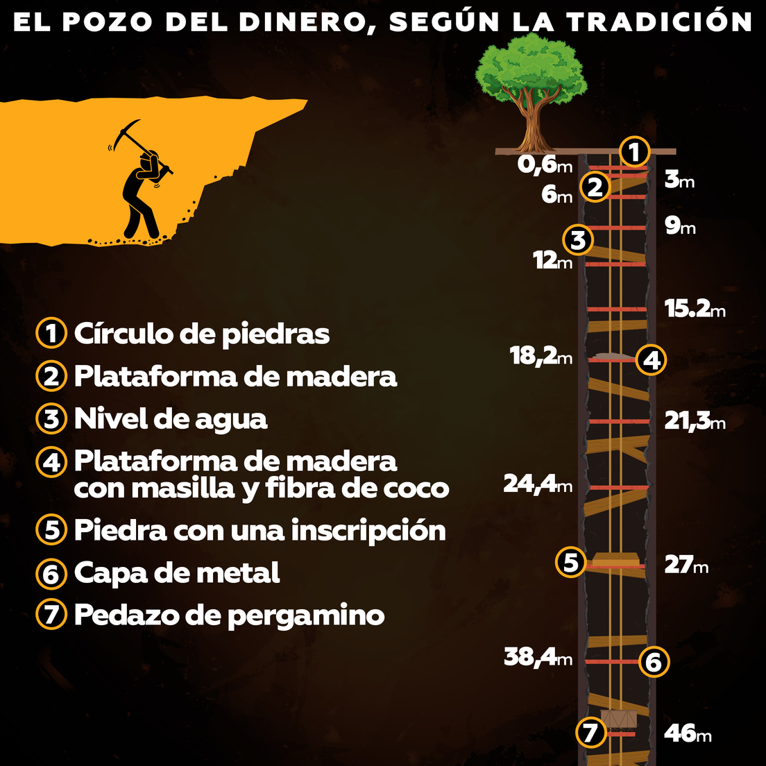 En el centro del misterio de la isla está el llamado 'Pozo del Dinero', un conducto vertical, de unos 4 metros de diámetro y con profundidad probada de más de 30 metros.
