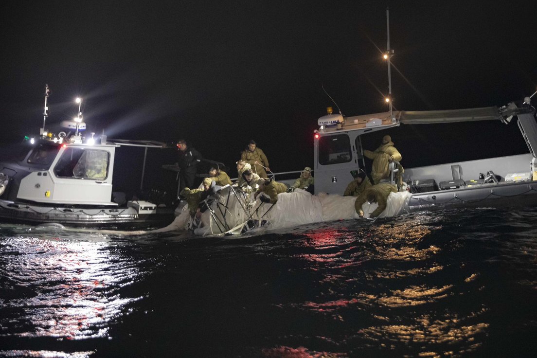 La Armada estadounidense ha publicado imágenes de la operación de recogida de los restos del globo aerostático de China derribado el pasado sábado sobre el océano Atlántico, frente a las costas de Carolina del Sur.