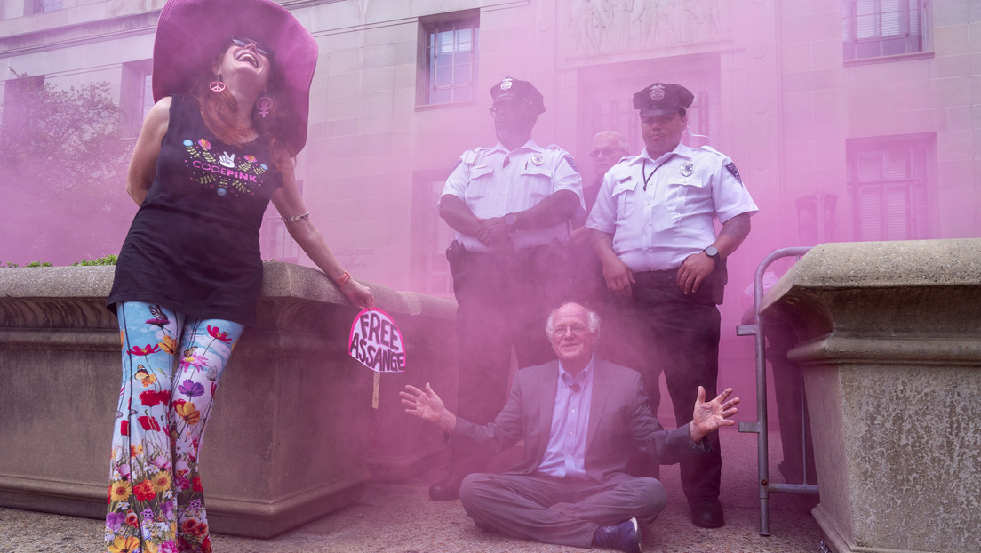 La Policía estadounidense detuvo este jueves a los activistas que se congregaron en defensa de Julian Assange, frente al Departamento de Justicia de EE.UU., para protestar contra su persecución por parte del Gobierno norteamericano. Ben Cohen, cofundador de la popular marca de helados Ben & Jerry's, y Jodie Evans, cofundadora del grupo antibelicista Codepink, pasaron alrededor de tres horas en detención hasta finalmente ser liberados.