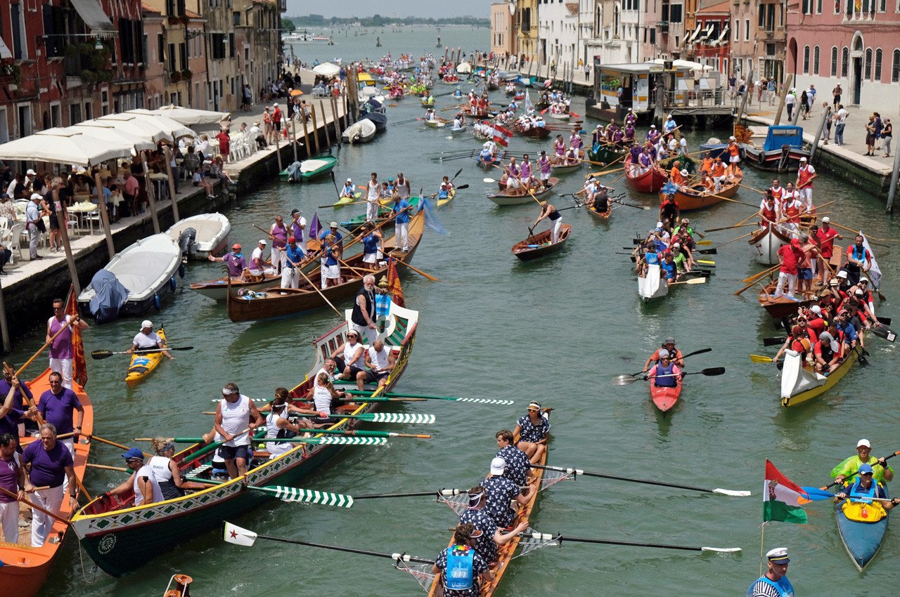 El 9 de junio se llevó a cabo la 45.ª edición de la colorida regata Vogalonga, uno de los eventos deportivos más importantes que celebra Venecia (Italia). En esta regata, que tiene un recorrido de 30 kilómetros y atraviesa algunos de los lugares y canales más famosos de esa ciudad, puede participar cualquier persona: el único requisito que debe cumplir es que su embarcación sea un bote de remos.